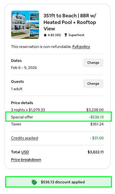 The intention is not to meaningfully reduce revenue. Instead, Airbnb rewards listings that use its native discount tools. Listings often see improved rankings, and conversion rates tend to increase due to visual price anchoring.